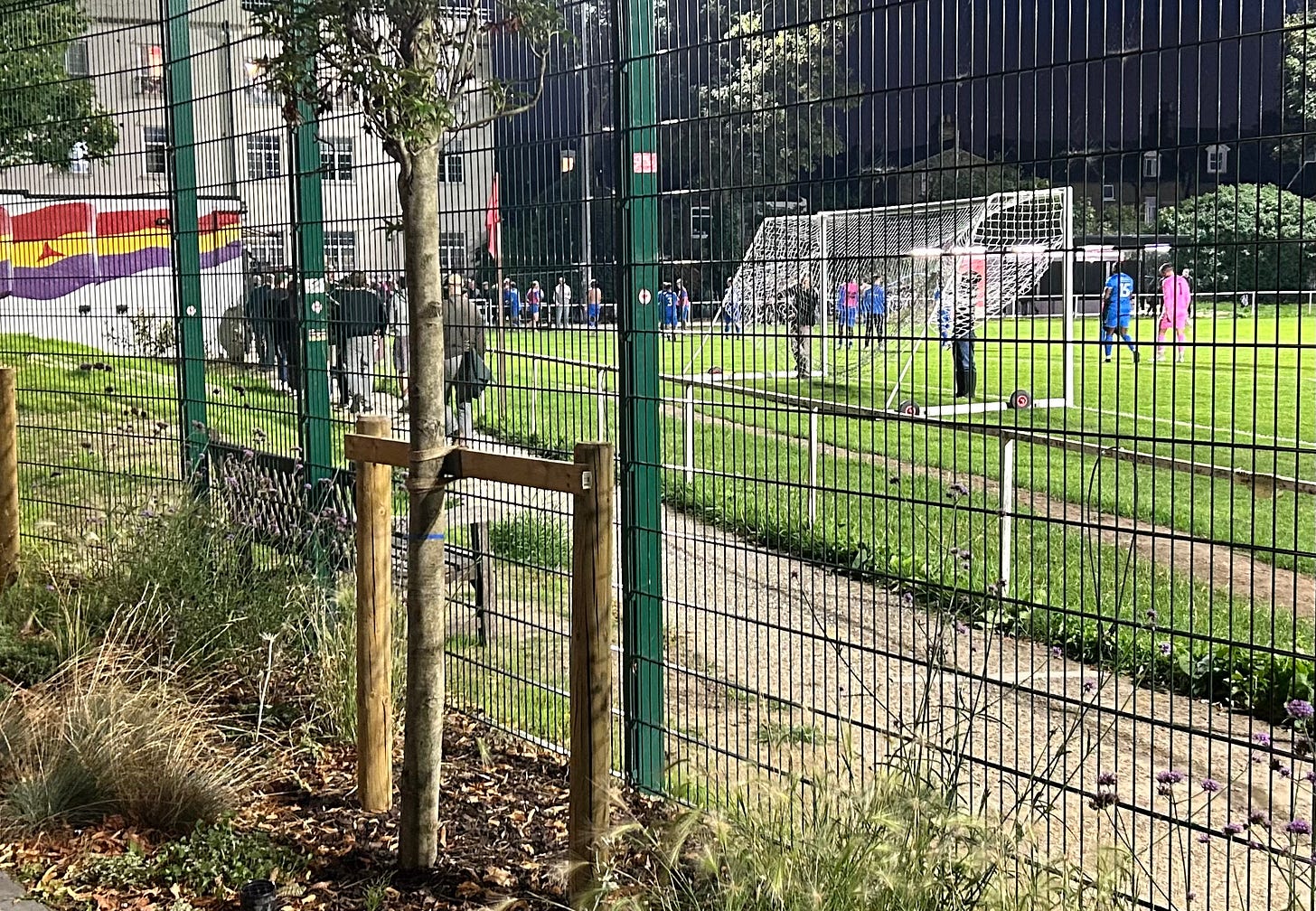 We meet at a local pub, knowing they do a decent pint from a nearby brewery, before heading to the ground for more of the same in the clubhouse. It’s nice to spot a few improvements since my last visit. The narrow alleyway, where fans gathered to boycott the previous regime, has been landscaped. The new fencing invites passers-by to watch from Walter Tull Way, named in honour of the pioneering black player and war hero. There’s a recently unveiled memorial to the Newham International Brigades, paid for by sales of their distinctive away shirt (to which Mark adds another sale). There’s also a new toilet block.